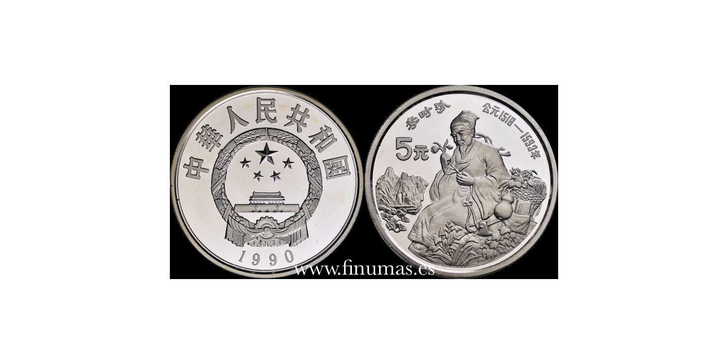 5 YUAN 1990 en calidad proof. Plata (Ag) 22´22gm ø36mm KM# 311