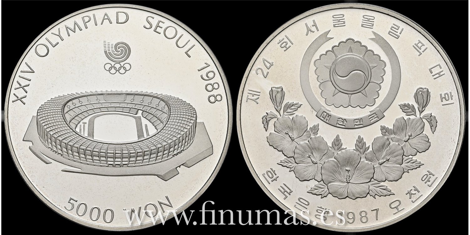 COREA DEL SUR - K-060 5.000 Won 1987 PROOF PLATA