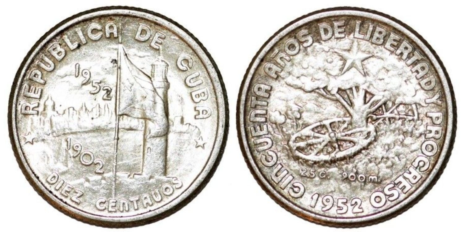 CUBA - K-23 - 10 CENTAVOS 1952 , SC plata
