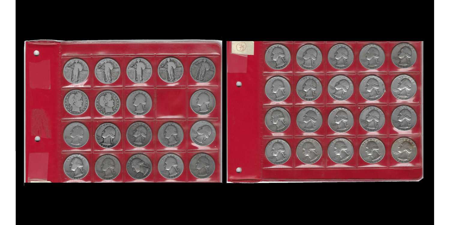 Lote 39 piezas de Quarter dollar Plata. 2 Barber 1909 y 1914. 5 Liberty 1926 a 30 y 32 piezas de Washington de 1932 a 1964 (Serie completa). Varias conservaciones desde BC a SC
