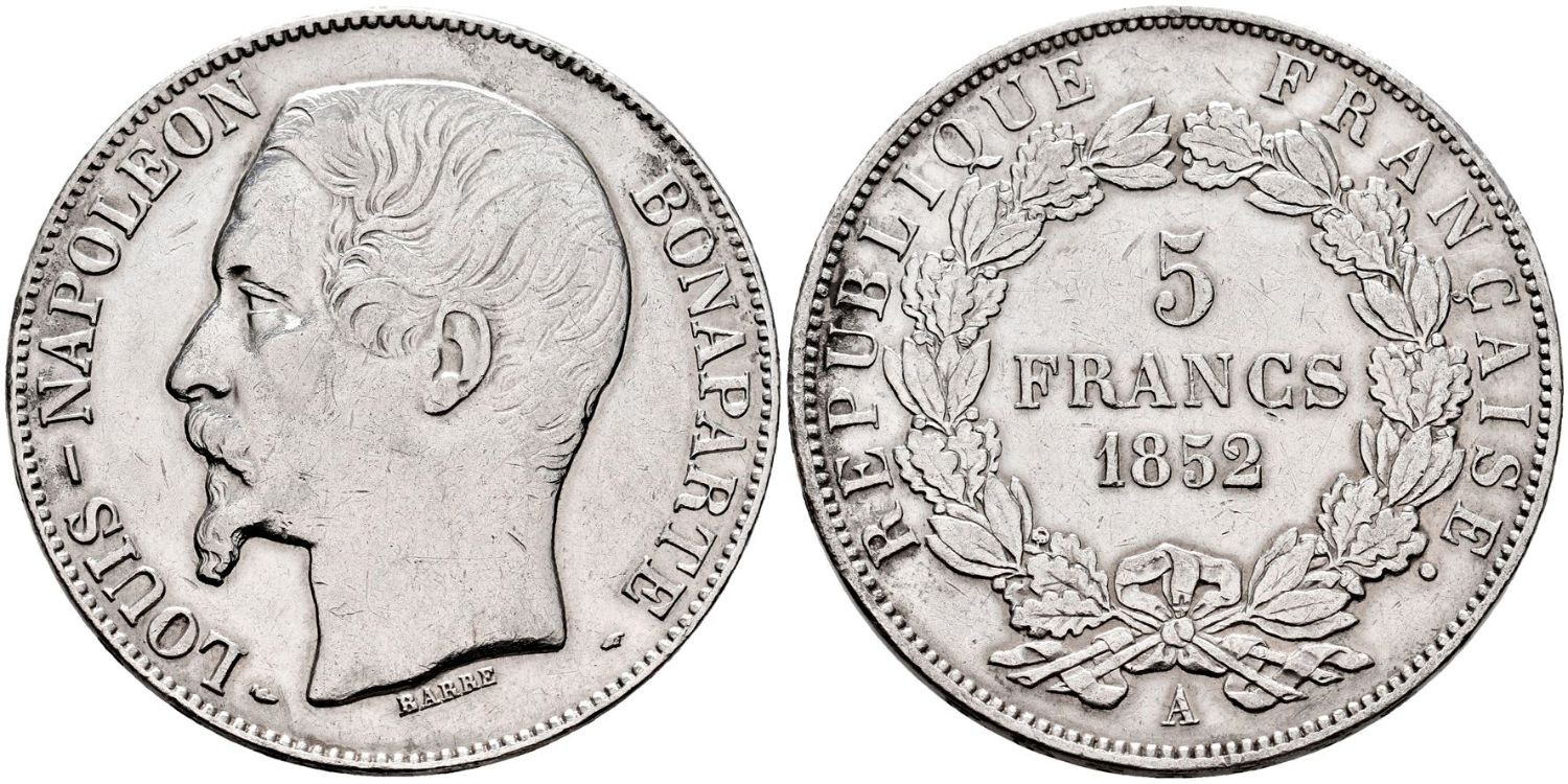 FRANCIA - K-0773 - 5 FRANCOS 1852 A - MBC+