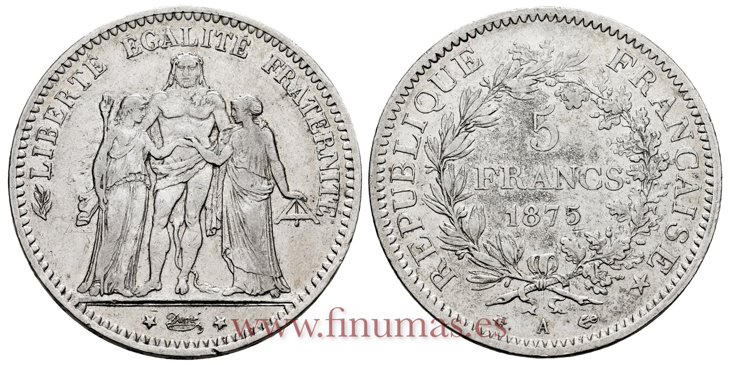 FRANCIA - K-0820 - 5 Francos 1875 A - MBC+