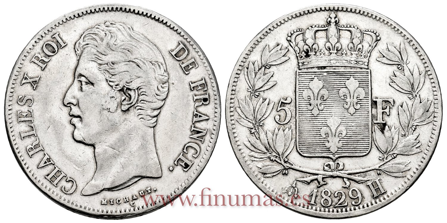 FRANCIA - K-0728.5 - 5 Francos 1829 H - MBC+