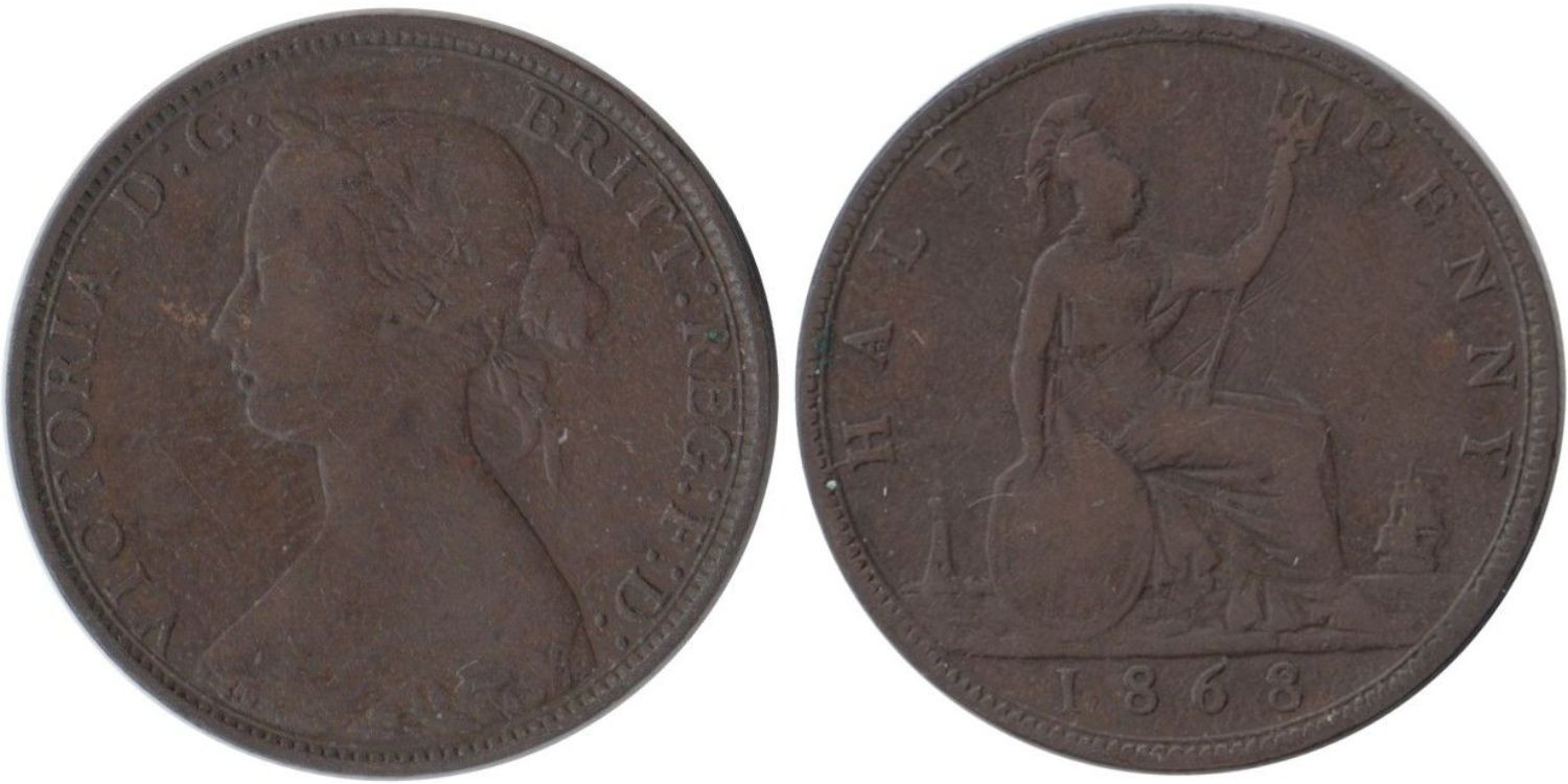 GRAN BRETAÑA - K-0748, 1/2 PENNY 1868 MBC