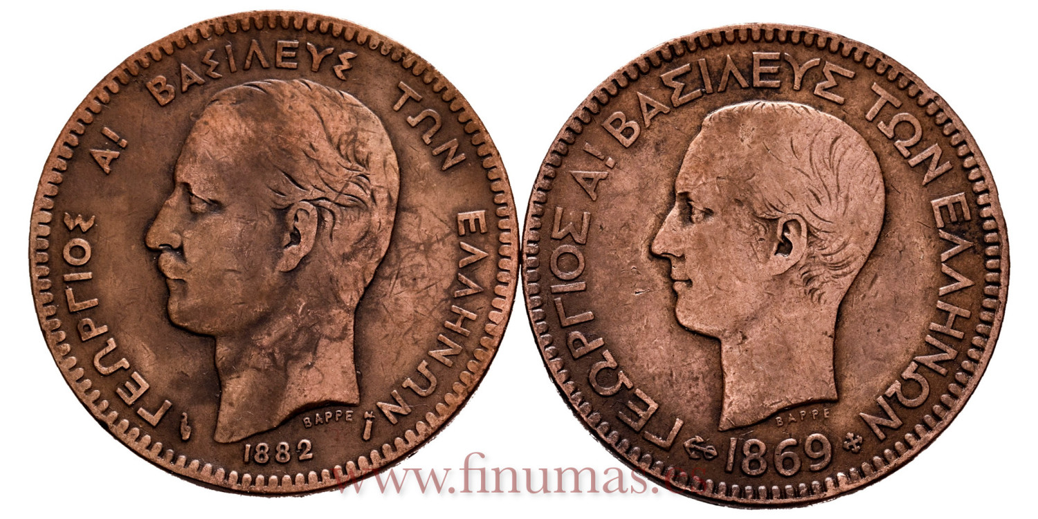 GRECIA - K-43 Y 55 - 10 Lepta 1869 y 1882, MBC-, 2 piezas