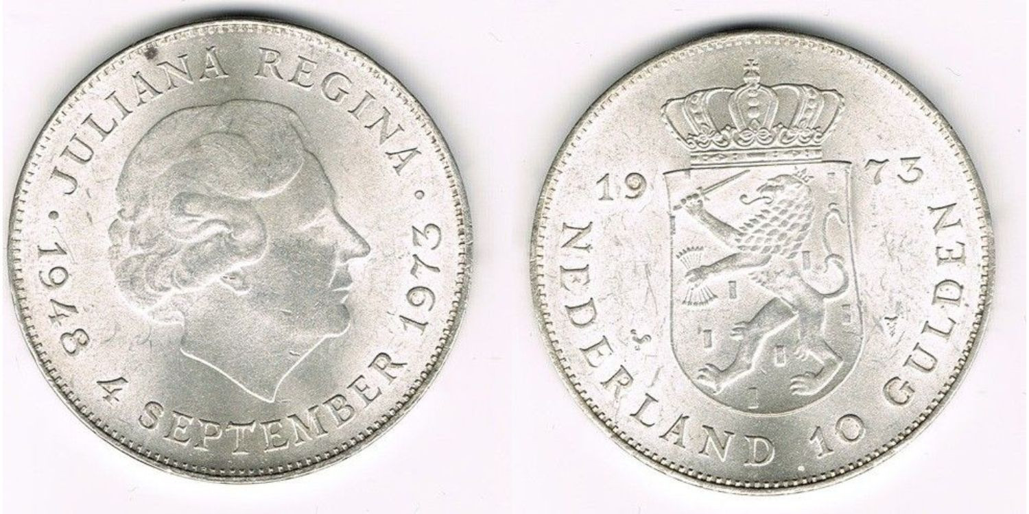 HOLANDA - K-196 - 10 GULDEN 1973 , EBC plata