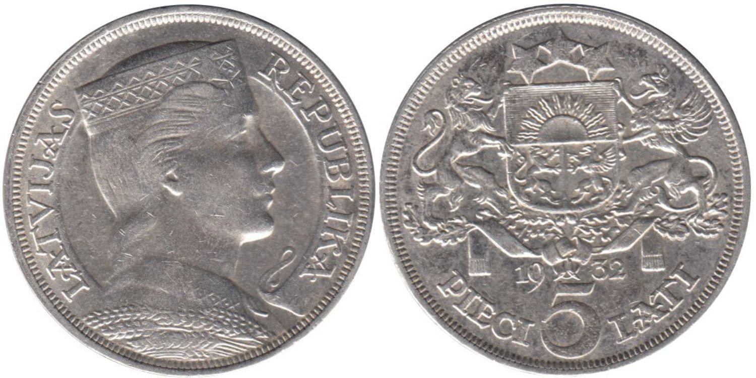 LETONIA - K-09 - 5 LATIS 1932 , SC plata