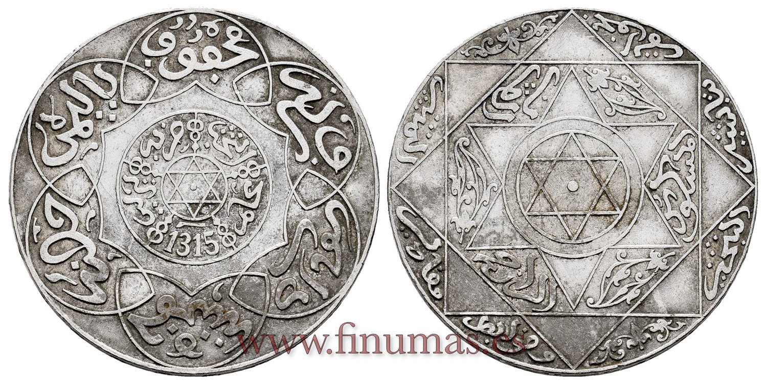MARRUECOS - K-012.2 - 5 Dirhams 1315. PLATA - MBC-