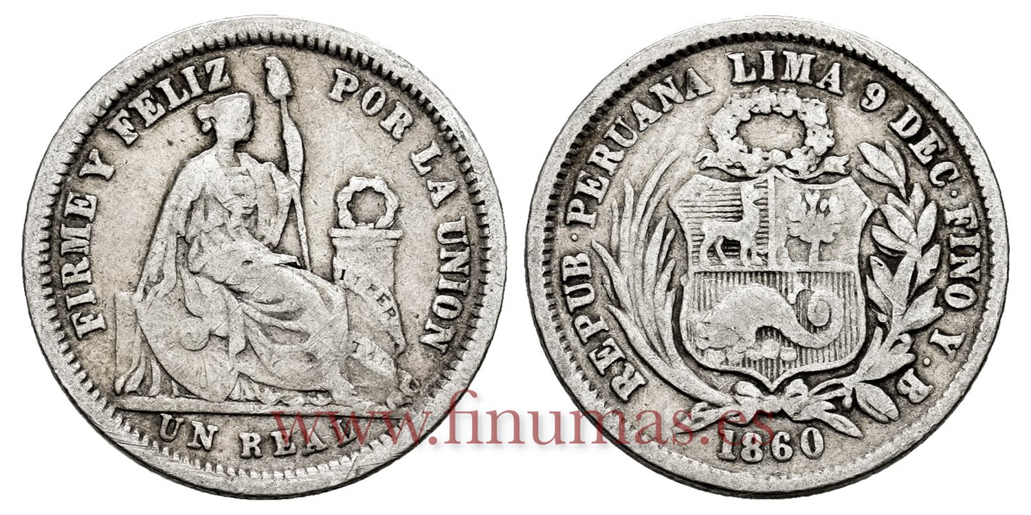 PERU - K-181 - 1 Real. 1860 YB - BC+