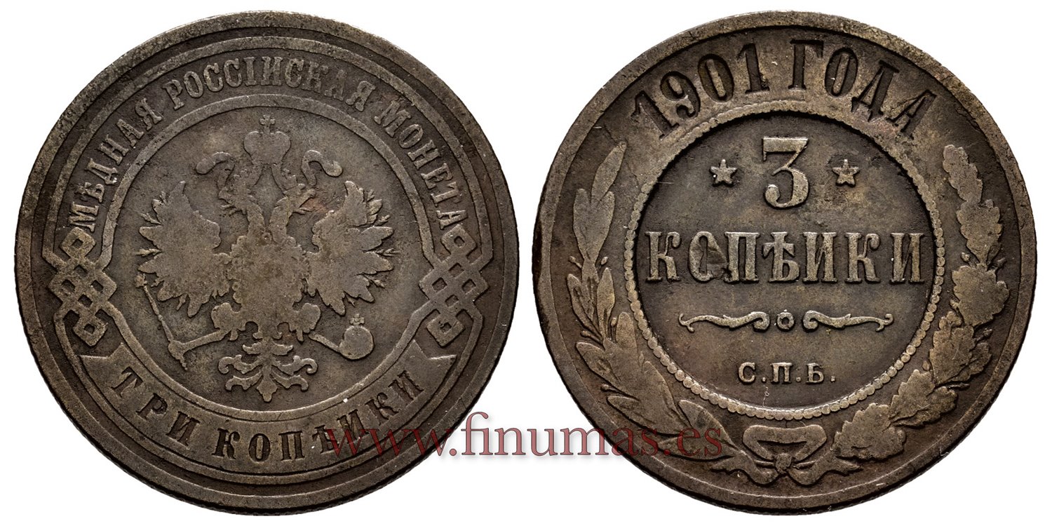 RUSIA -IMPERIO - K-011,2 - 3 Kopeks 1901 - MBC