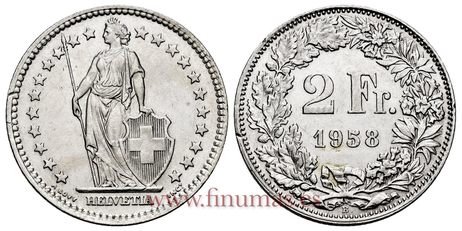 SUIZA - K-021 - 2 Francos 1958 - EBC+