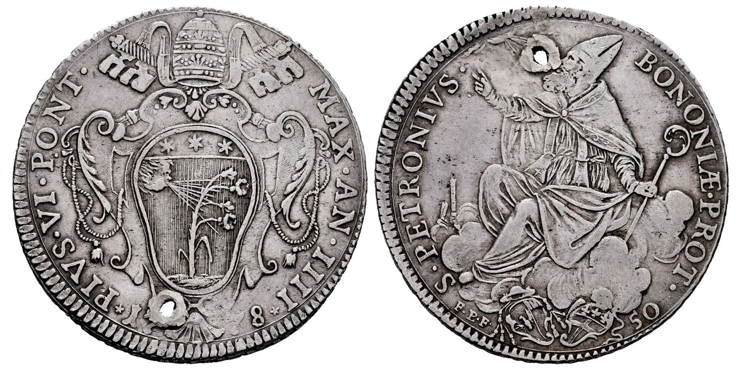 Estados Papales Vaticano. 1778. Pío VI (1775-1799). Roma. 1/2 scudo. (Muntoni 24). Plata (Ag.) 13,17 g. Agujero a las 12h, si no EBC