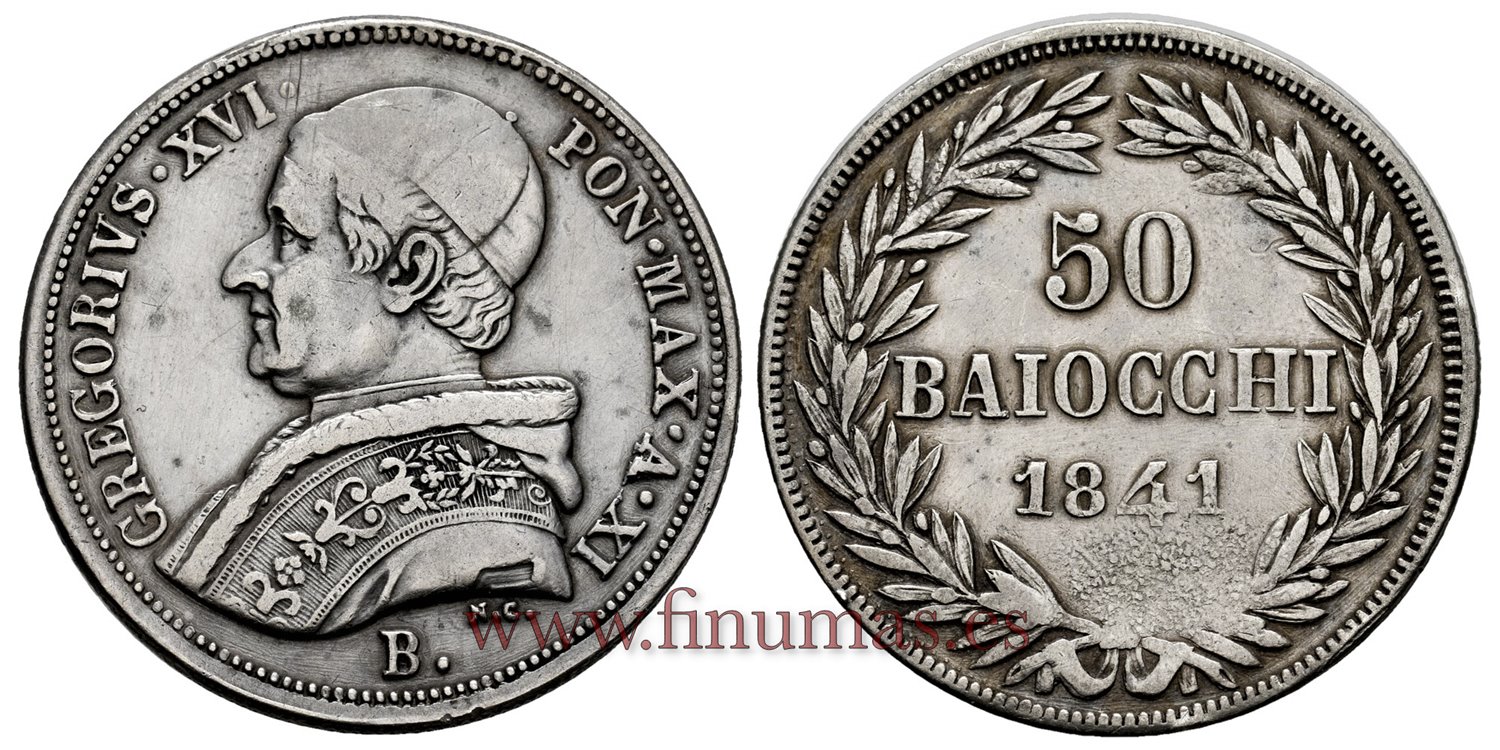 ESTADOS PAPALES - K-1323 - 50 Baiocchi 1841 - MBC, XI-R