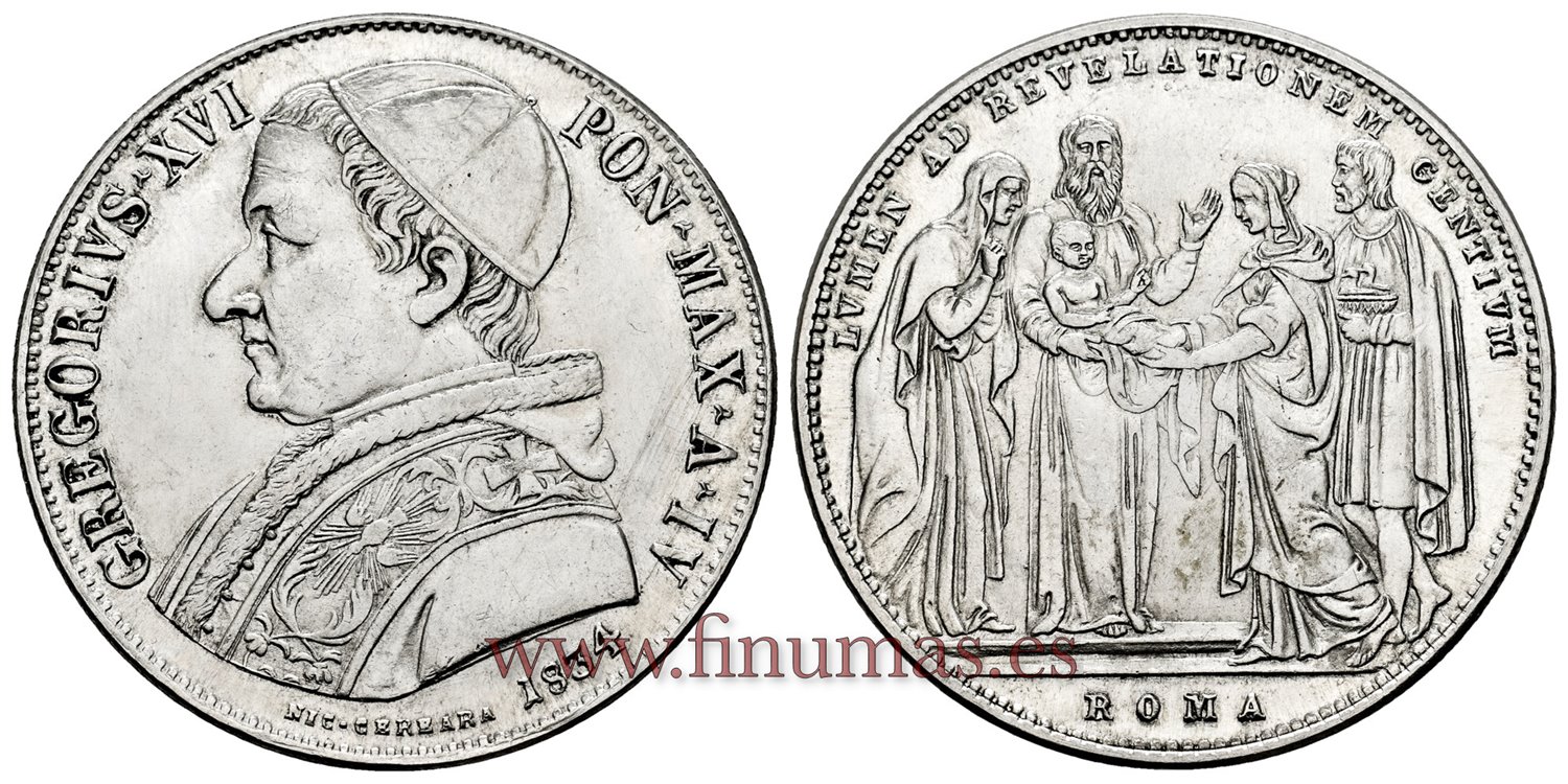 Estados Pontificios. Gregorio XVI (Bartolomeo Alberto Cappellari. 1831-1846.) Escudo Plata Ag. 37 mm, 26,83gm. Roma, Anno XI (1841.) GREGORIVS · XVI - PON · M · AN · XI / CERBARA / R. Busto rematado de Gregorio XVI a izquierda, con estola . Rev. SCVDO/18