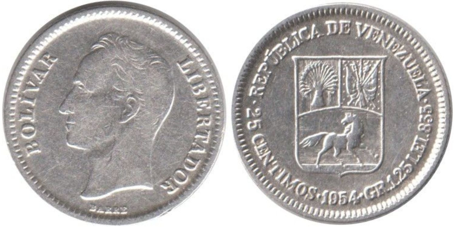 VENEZUELA - K-036 - 50 CENTIMOS 1954 , MBC plata