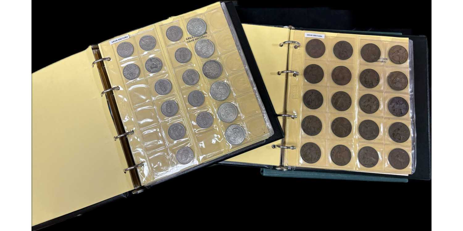 L-023.- COLECCIÓN MONEDAS CIRCULANTES GRAN BRETAÑA 2 ALBUMES CON CASI 430 MONEDAS DIFENTES