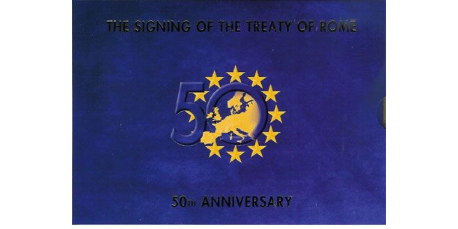 Set oficial de Irlanda que incluye los 8 valores acuñados en el año 2007 con la moneda conmemorativa de 2 € del Tratado de Roma