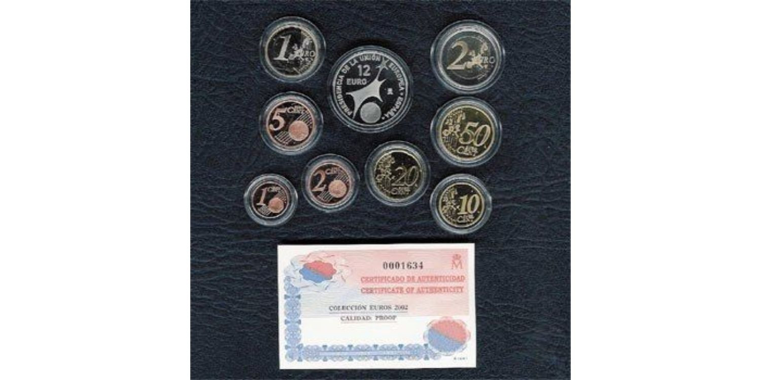 Set oficial de la F.N.M.T que contiene los 8 valores acuñados en el año 2002 en calidad Proof mas la moneda de 12€