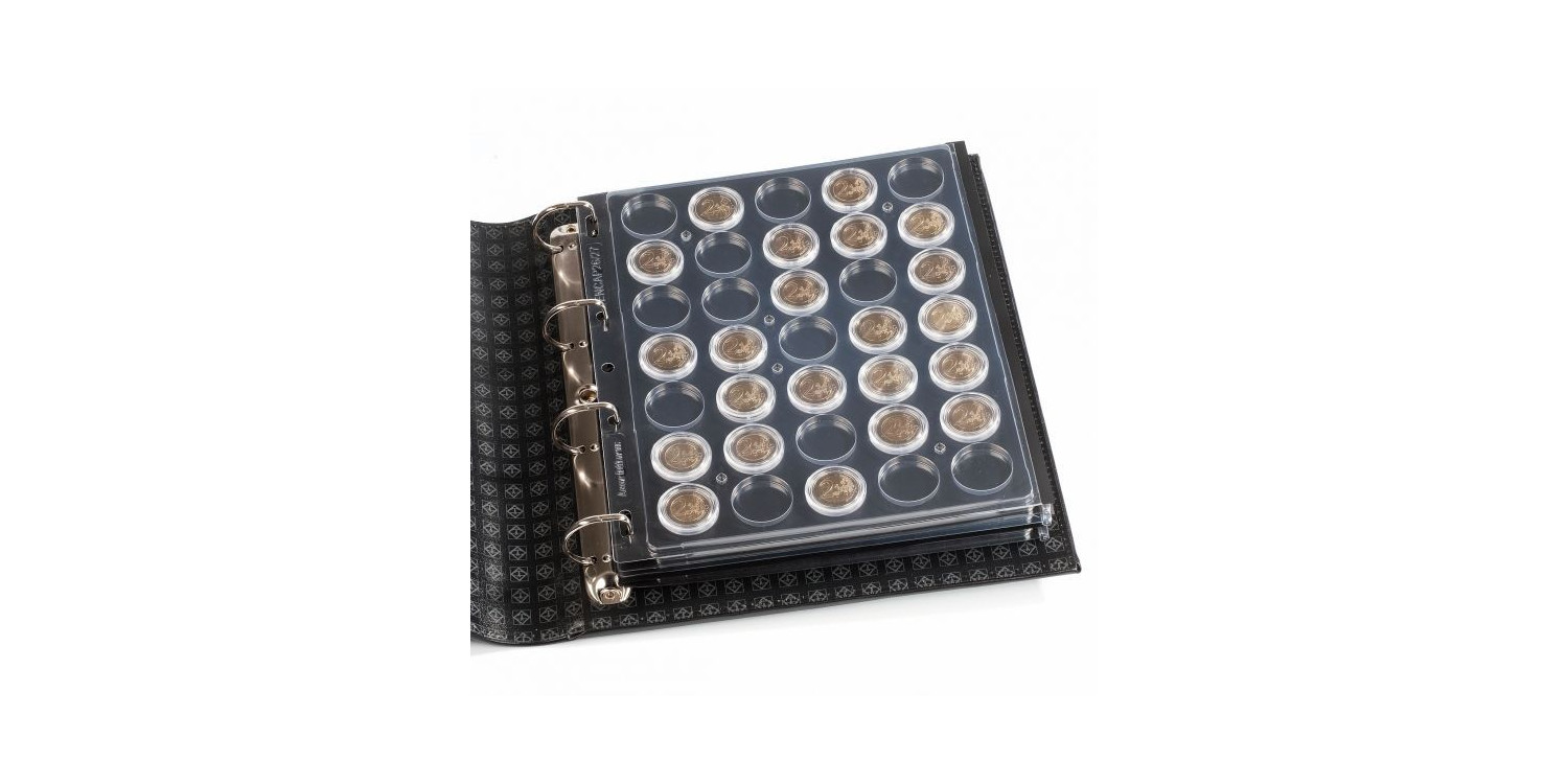 Especialmente diseñadas para alojar monedas de 2€ en capsulas redondas. 35 monedas x hoja