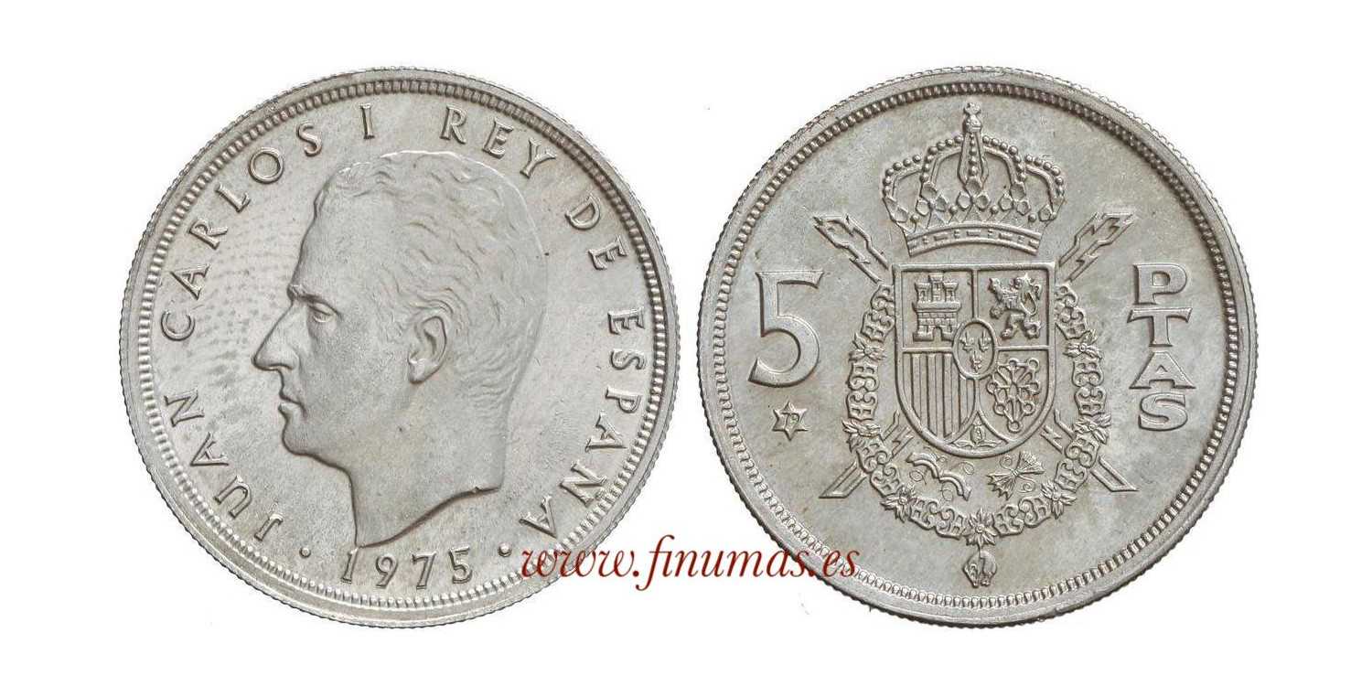 5 Pesetas. 1975 (*19-79). 6,30 grs. (Ag). ERROR: Acuñación en cospel de plata.